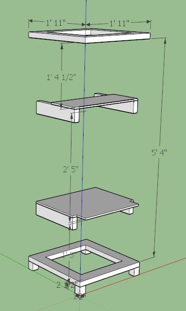 The software allows you to add elements in layers and then turn various layers off or on. Here is the design with the columns removed and top / bottom plywood caps ...