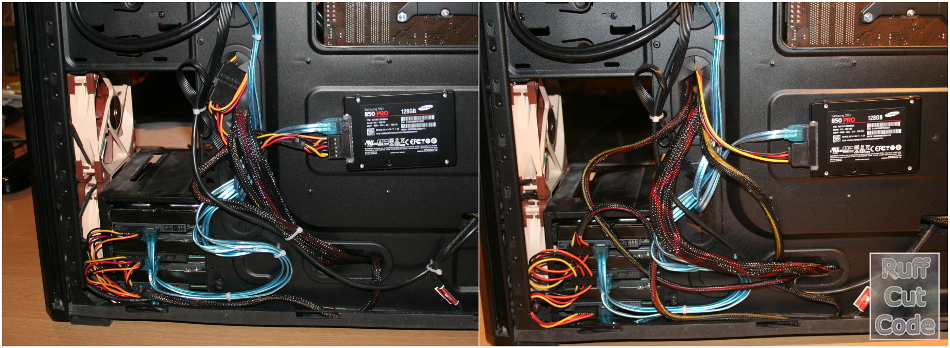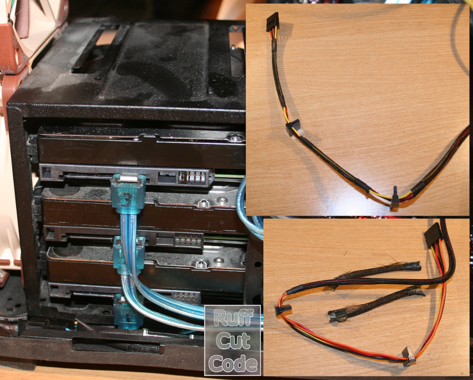 Swapping a PSU is a pain. Any other item with the possible exception of a mobo is easy ... pull the old one out, put the new one in. Swapping a PSU means pulling out all of the cables and re-doing them all. The new PSU is heavier and they've gone crazy with the cables ... you can't easily bend the suckers. I have 3xHDDs in a cage (33mm apart) and they gave me about 100mm of wire that I had to bend. I ended up stripping the sleeving off the sections between the power SATA plugs. I've been looking at making something like the item below ... guess now I have an incentive.