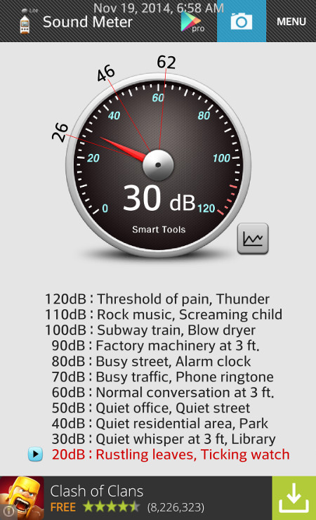 My smart phone reports the sound level at about 31 Db ...