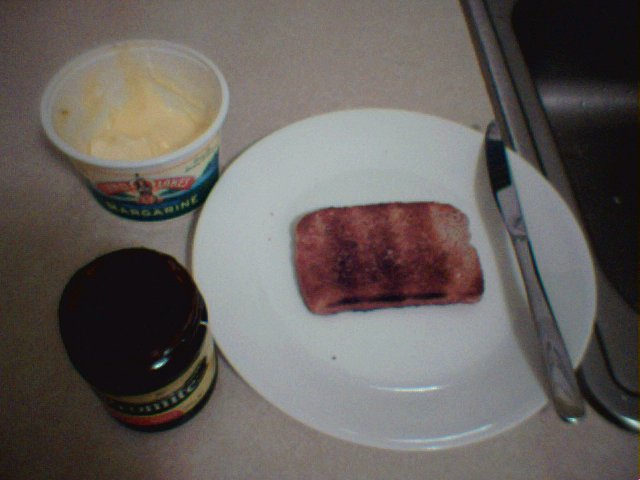 Just like this ... you will also need a plate, a knife some margarine (but butter is much better!) and some vegemite, marmite or promite.